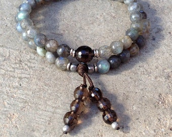 Labradorite and Smoky Quartz 54 Bead Wrap Mala Bracelet | Labradorite Mala