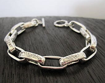 Chunky Silver Link Bracelet/Artisan Jewelry/Handmade Bracelet (Length 8")
