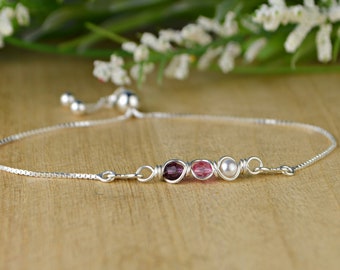 Any 3-5 Crystal Birthstones Infinity Style Adjustable Sterling Silver Interchangeable Charm/Link Bolo Bracelet-Charm,Bracelet Chain, or Both