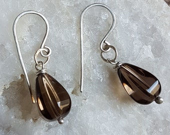 Hand Made Sterling Silver and Smoky Quartz Earrings