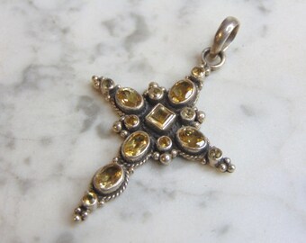 Womens Vintage Estate Sterling Silver Smoky Quartz Cross Pendant 12.2g E4703