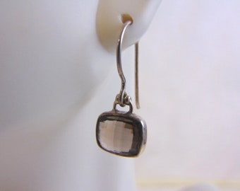 Vintage Sterling Silver Smoky Quartz Dangle Pierced Earrings