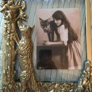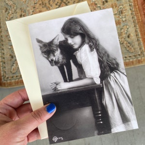 Fox and Girl Unusual Vintage Photography Victorian Edwardian Sepia or Black White from Cabinet Card Photo Print Cute Pet Fox