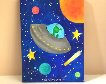 This listing is for an 36x24 inch painting. The images shown are various versions and sizes and styles that I have painted in the past. Your painting will be one of a kind but following this theme. The last 4 image slots show sets I have also done for space themed rooms, if you are considering a set instead of a large canvas, or prefer another size or shape canvas please inquire and I can quote or set up a reserved listing for you. For a price list of my in stock canvas sizes please see my policy section here: