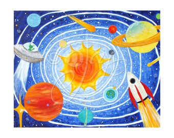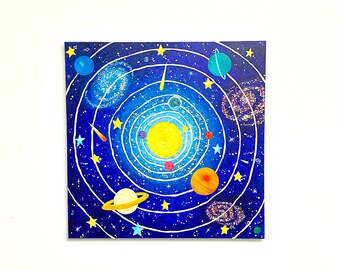 Solar System Painting, custom children's space painting, 36"x24" personalized made to order acrylic on gallery wrapped canvas, art for kids