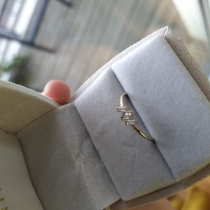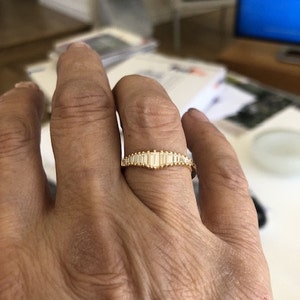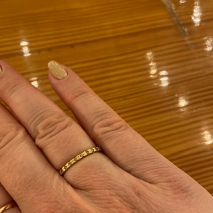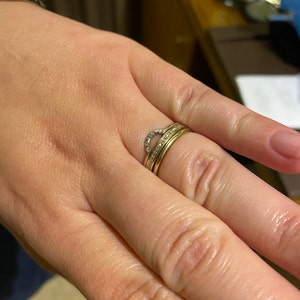 Such a beautiful, simplistic and delicate ring. Goes perfectly with my rose gold engagement ring. Communication from the seller was very good and very helpful. Size does come out a little bit big, but doesn’t cause me much of a problem as can be held in place by my engagement ring. Would definitely recommend.