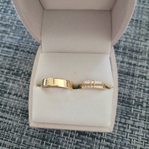 This is a perfect match to my engagement ring (also purchased from artemer!). It is gorgeous and exactly what the photos represent. The artemer team reached out when I indicated this was to be worn with my engagement ring for details like measurements and photos to ensure a perfect fit. The only issue I ran into was delivery - DHL is super inconvenient for a purchase like this they requires a signature. But otherwise my experience and my ring are perfect!!