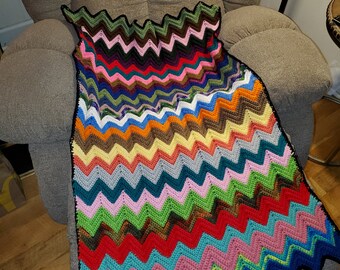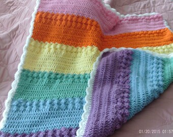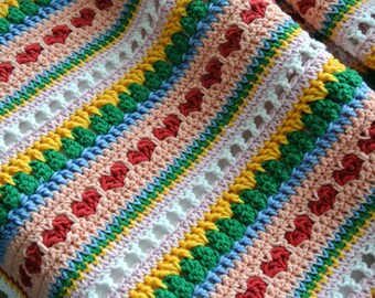 Handmade Bright Rainbow Stripes Afghan Blanket for Baby or Toddler