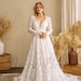 Boho Lace Wedding Dress, Long Sleeve Romantic Wedding Dress, V Neck Wedding Dress, Lace and Chiffon Wedding Dress