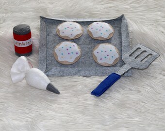 4 Felt Glitter Cookies -- Valentine's Day Felt Cookie, gift for girl, 4 felt cookies for cookie party pretend play, tea set, Valentine party