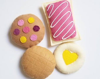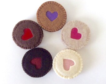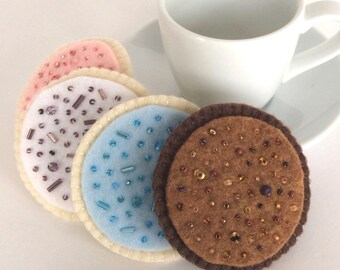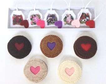 Felt Food: 2 Raspberry Linzer Cookies Felt Cookies Gift for Girls -- children's pretend play, tea set, tea party, birthday gift for girls