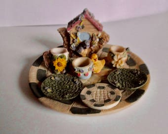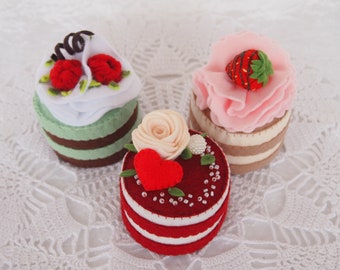 Felt Food: Tea Set -- Felt Blueberry Vanilla Cupcake, Blue Tea Bag, Lemon and Strawberry, children's pretend play, tea set, or gift for girl