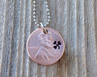 Stainless steel Bottle opener hand stamped customized lucky penny boyfriend gift 7 year anniversary gift copper St Patricks Day Gift