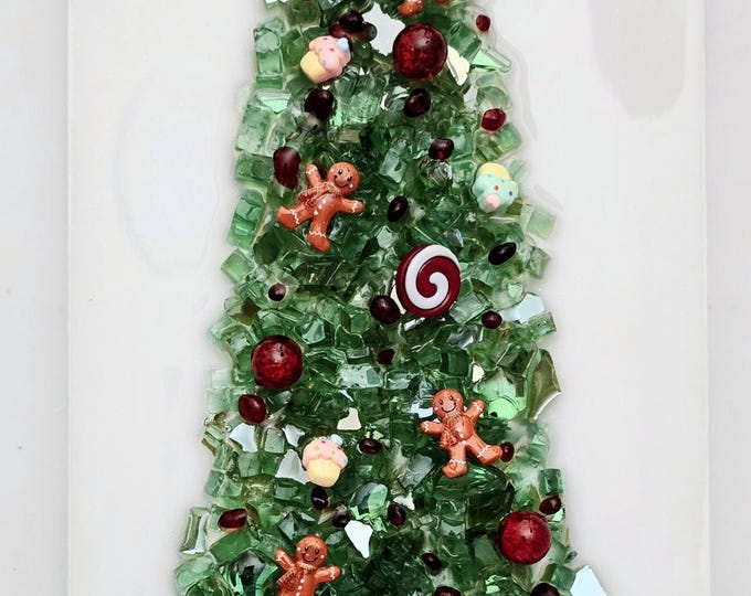 Crushed Glass Christmas Tree Decor: Handmade Resin Shelf Sitter