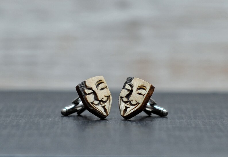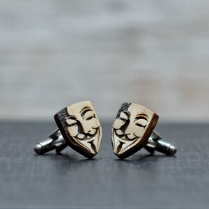 WOOD cufflinks - V for Vendetta - Guy Fawkes mask elegant cuff links