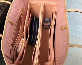 Neverfull (Rose Ballerine) GM MM PM Organizer (w/ Detachable Zipper Bag), Tote Felt Purse Insert, Makeup Gold Golden Zip Laptop iPad Pocket