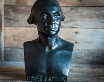 Vintage George Washington Bust Statue Black Very Heavy Bronze First US President United States Political Decor Decoration American Americana