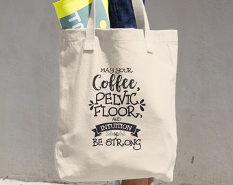 May Your Coffee Pelvic Floor and Intuition Be Strong Funny Student Midwife Doula Cotton Tote Bag