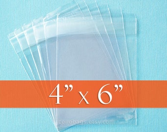 100 4 x 6 Inch Resealable Cello Bags, Clear Cellophane Plastic Packaging, Acid Free