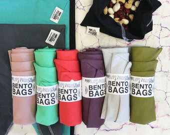 BENTO BAG BUNDLE: Linen. Cloth bag with tie closure for all kinds of goodies. Great for bulk shopping, traveling and lunch packing.