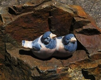 Vintage Blue Birds Figurine Ceramic Made In Japan Retro