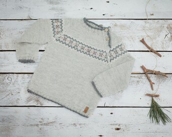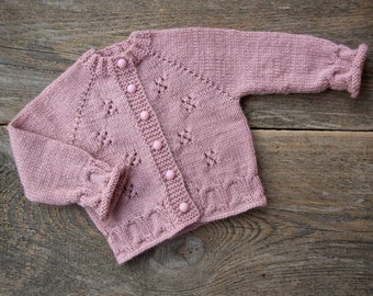 SALE 30% OFF Pink baby sweater / Hand knitted alpaca children sweater /Pink girl sweater / Kids sweater / Baby cardigan / Toddler sweater