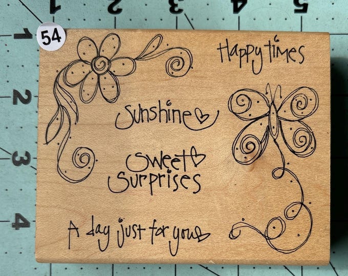 Verbiage Wood Mounted Rubber Stamp Card Size Butterfly birthday