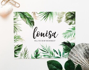 Will you be my bridesmaid card tropical, bridesmaid proposal card, be my maid of honor, bridesmaid card, bridesmaid proposal