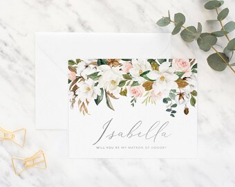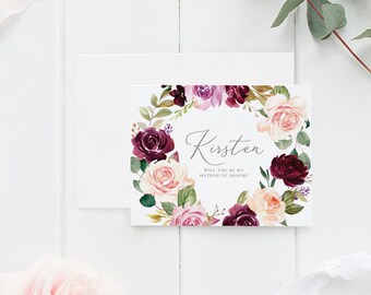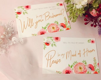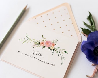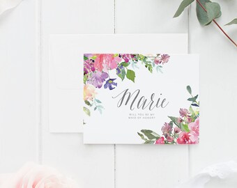 Watercolor Floral Will you be my Bridesmaid Card, Maid of Honor, Wedding Party, Bridesmaid Proposal, Wedding Party Gift, Flower Girl Gift