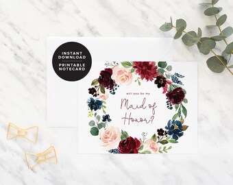 Printable will you be my maid of honor card, maid of honor proposal card, maid of honor card, will you be my, maid of honor proposal