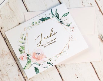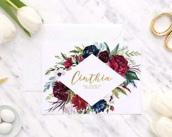 bridesmaid proposal / will you be my bridesmaid card / personalized / floral / bridal party card / gold foil / maid of honor / flower girl