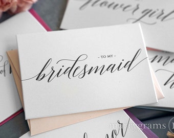 To My Bridesmaid Cards, Maid of Honor, Flower Girl- Wedding Party Thank You Cards Gift - Thank you for Being My Bridesmaid Notecard CS04