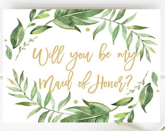 Printable maid of honor card, Will you be my maid of honor, Greenery bridesmaid card, Botanical bridesmaid card, Garden maid of honor card