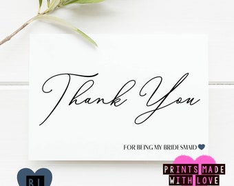 Thank you for being my bridesmaid card , thank you for being my maid of honour / honor / flower girl / wedding planning , thank you cards