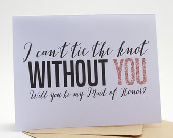 I Can't Tie the Knot Without You Maid of Honor card, maid of honor crd, bridesmaid card, wedding card, maid of honor, be my bridesmaid