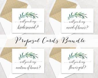 Proposal Cards Bundle, Printable Greenery Bridesmaid Proposal Card, Maid of Honor, Matron of Honor, Flower Girl, Eucalyptus