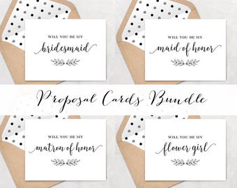 Proposal Cards Bundle, Printable Bridesmaid Proposal Card, Maid of Honor, Matron of Honor, Flower Girl, Modern Calligraphy, VW10