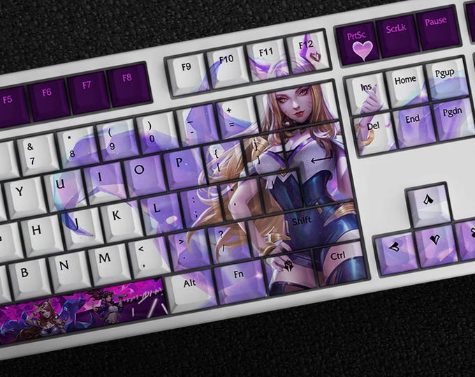 Ahri - The Nine-Tailed Fox LoL Keycap Set, 139 Keys PBT Profile Cherry For Mechanical Keyboard | KDA Ahri Custom Keycap | KDA Gaming Decor