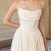 As almost all reviewers have stated, I was nervous about committing to a dress that I hadn't tried on in person, so I asked if I could order a standard size and then exchange it for custom. Angelina was so kind as to offer to make adjustments to the sample size based on my measurements and still allow a return for a small fee. Fortunately, it was not necessary! I'm in love with my dress. It's amazing to have a budget under $1,000 and still not feel like you had to 'compromise' in the slightest. The fullness of the skirt & thick satin material make this gown feel luxurious. The sleeves & tie-corset back give it a bit of a Renaissance feel while still looking classic and bridal. The back also puts me at ease because I know that if my weight fluctuates by a few pounds before the wedding, I can just loosen or tighten the back.