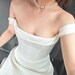 This ball gown is made of noble off-white satin. The dress is not see-through, the whole dress is sewn from two layers of fabric.