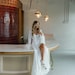 White kimono robe with lace details bride short robe with long sleeves Boudoir robe Bridal robe Dressing gown Bridesmaid gift