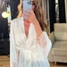 Long silk robe | White boudoir robe | Silk boudoir robe | Wedding kimono robe | Boudoir lingerie | Satin robe | Robe with feathers | rbmb02