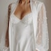 Bride robe with lace sleeves White boudoir robe Long silk robe Robe with lace sleeves Bridesmaid robe Lace gown women