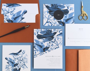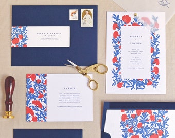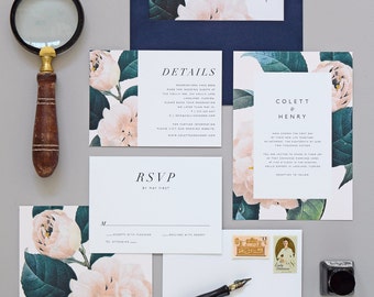 Jardin Wedding Invitation & Correspondence Set / Vintage Garden Florals and Navy Accents / Sample Set