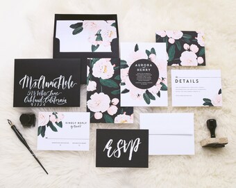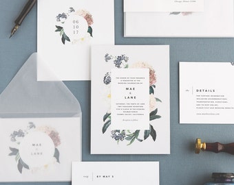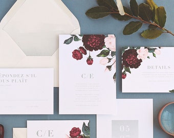 Aurora Wedding Invitation & Correspondence Set / Vintage Florals and Modern Accents / Sample Set
