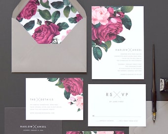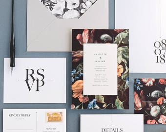 Juliette Wedding Invitation & Correspondence Set / Vintage Floral Paintings and Modern Accents / Sample Set