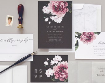 Florence Wedding Invitation & Correspondence Set / Vintage Florals and Marble Accents / Sample Set