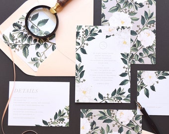 Ainsley Vol.II Wedding Invitation & Correspondence Set / Botanical Greenery, Vintage Accents and Minimal Design / Sample Set