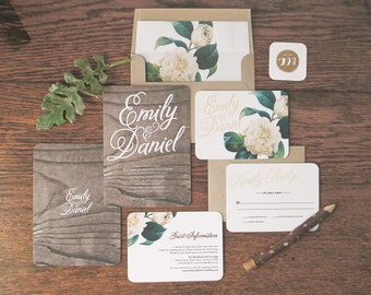 Woodland Floral Wedding Invitation & Correspondence Set / Rustic Wood with Romantic Accents / Sample Set