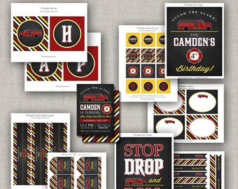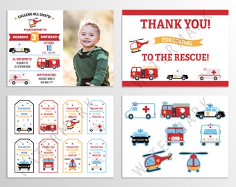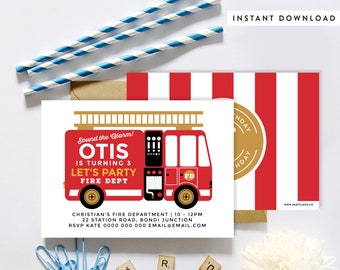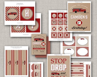 Available with or without a photo. Party collection sold separately: https://www.etsy.com/listing/218804563/fire-truck-kraft-party-collection-diy
